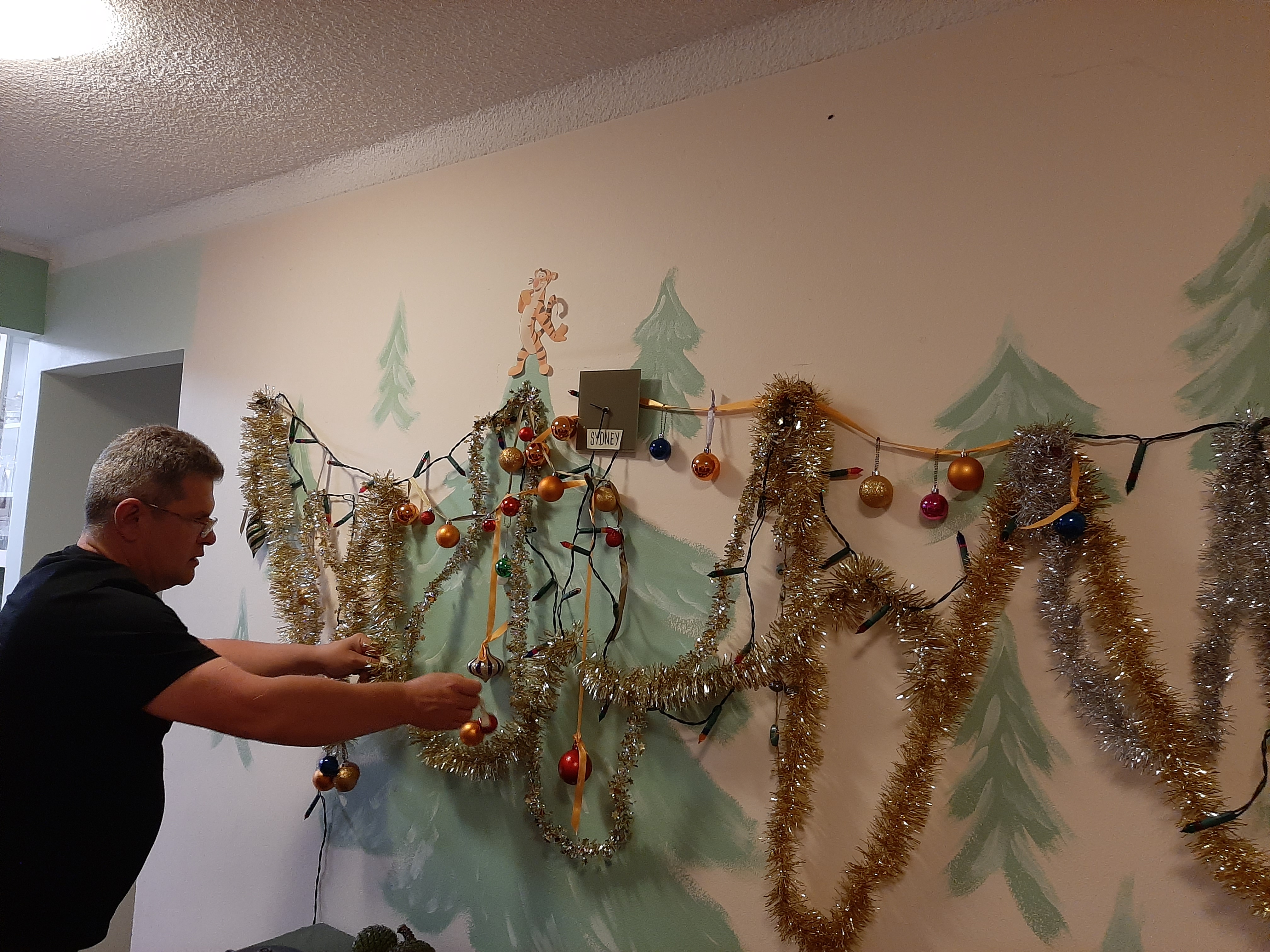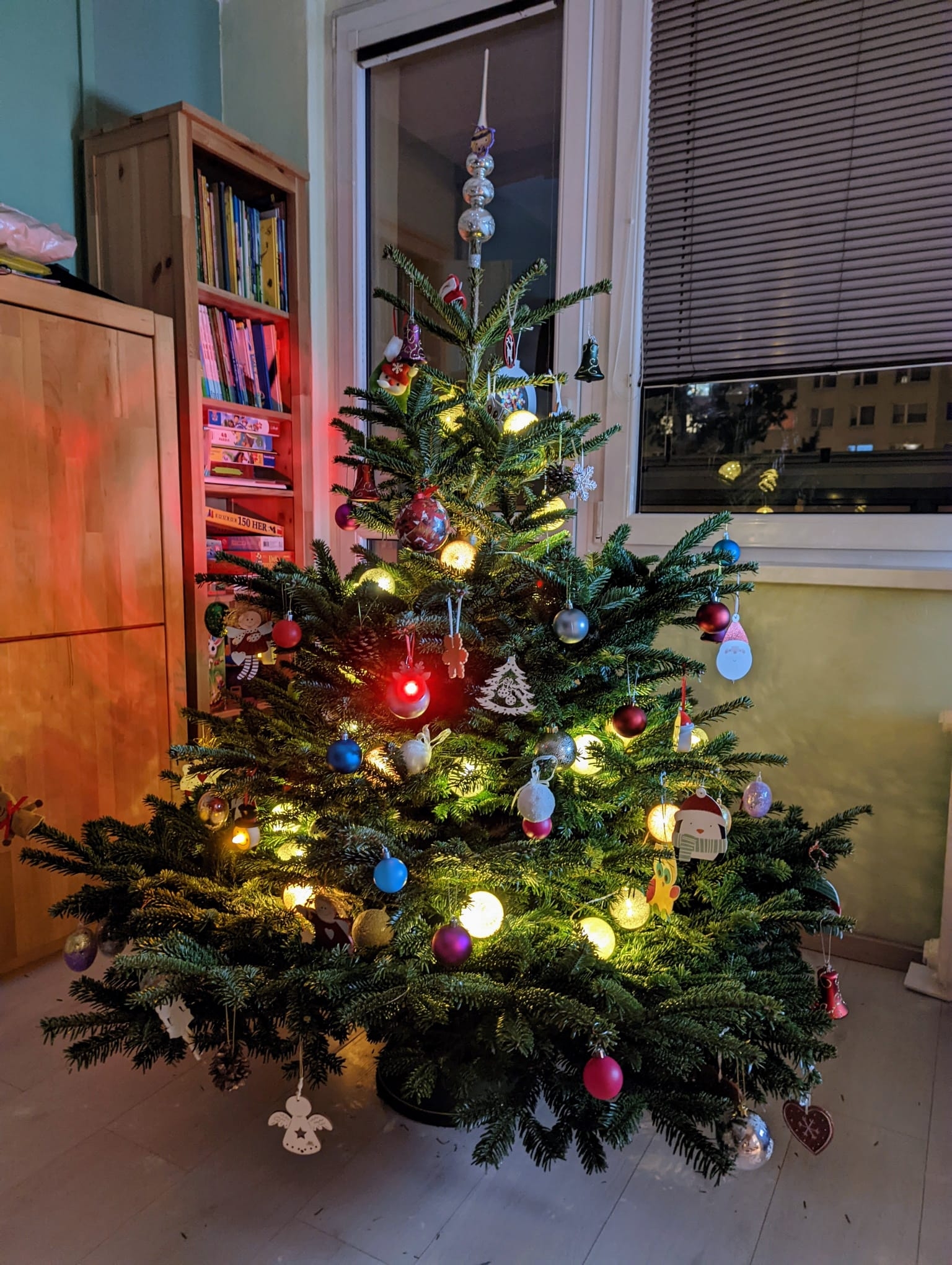 А у нас ремонт (растянулся из-за локдауна), так что ёлочку мы нарисовали на стене. Хотя, чё уж ёлочку-то -- целый лес! Ну и украсили, разумеется 😄