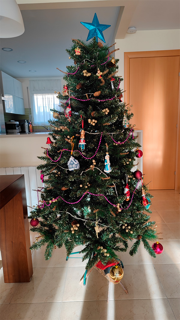 Ну и давайте ёлками хвалиться. Вот наша. Обычная искусственная ёлка, украшенная семейными игрушками, которым уже много-много лет. Ну и традиционный каталонский Кага Тио под ней, а как без него?!!