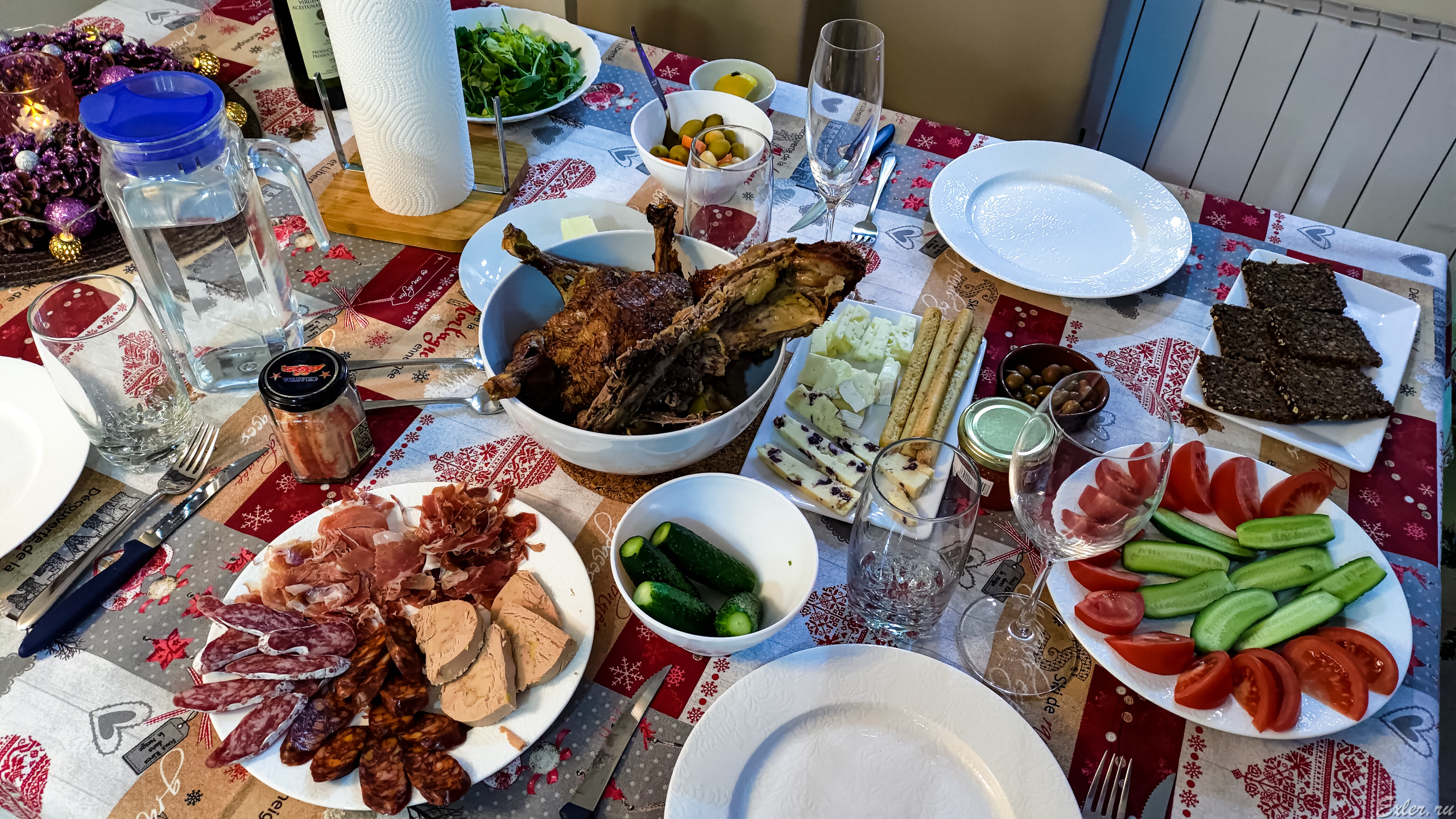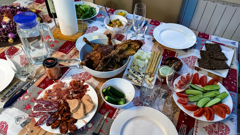 А вот уже 25-го на стол подают разное мясо и птицу (чаще утка или гусь). Ну и конечно спиртное (любое, от вина до водки).