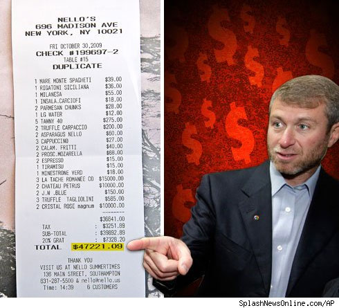 Хорошо бы узнать, какие люди обедали вместе с Абрамовичем. Если российские чиновники, то деньги потрачены не зря. 😉