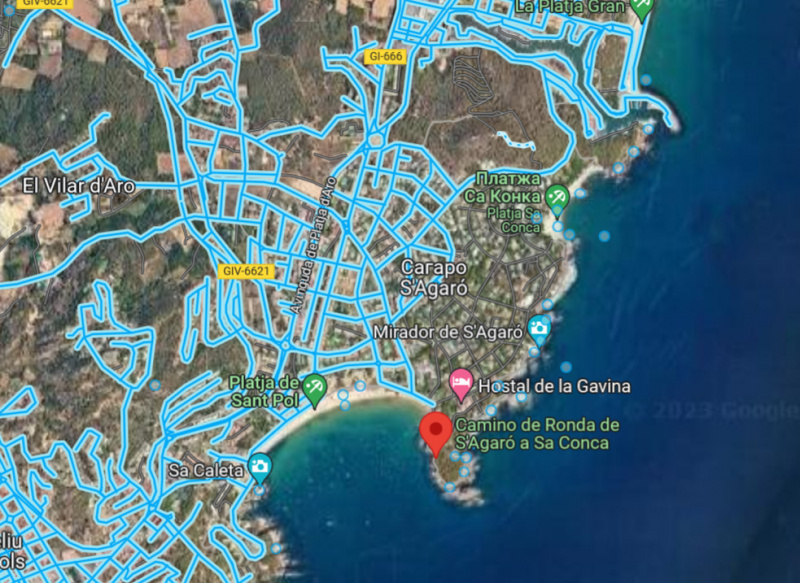 Начало Camino de Ronda и вид на Сагаро и пляж Сант Пол.