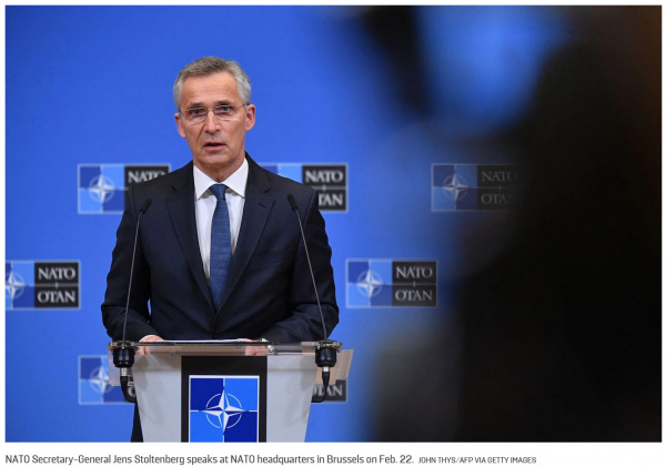 Как ни странно, НАТО как альянс предоставлял пока Украине только нелетальную помощь — шлемы, одеяла и т.п, тогда как ЕС (который не имеет военной сферы) поставлял Украине вооружения. Теперь оружие на фронт пойдет именно от НАТО. Глава НАТО Йенс Столтенберг подчёркивает острую необходимость замены советского вооружения на современное.