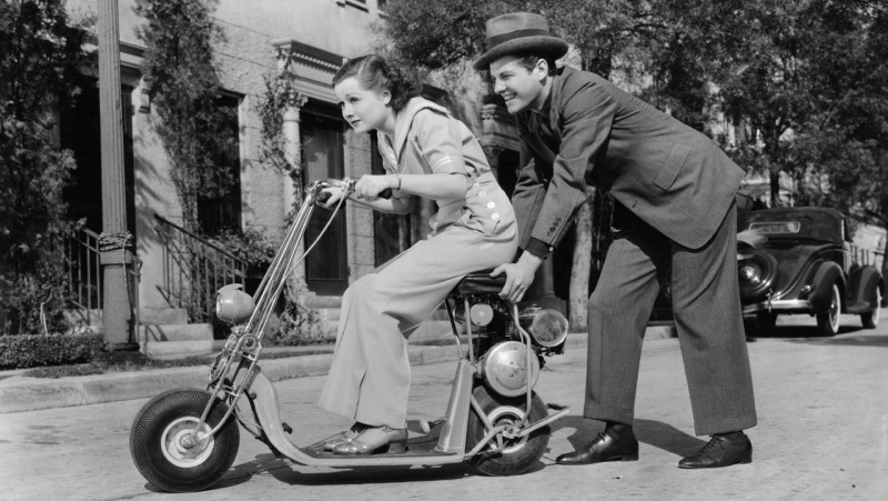 Забавно. Оказывается, самодвижущиеся самокаты существовали еще в начале XX века. Они назывались "автопеды", их производила нью-йоркская компания Autoped Company с 1915 по 1921 год. В Европе аналогичные модели производила компания Krupp с 1919 по 1922 год. (Отсюда.)