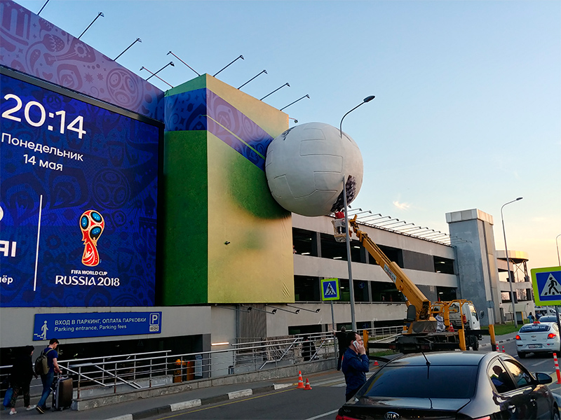 На выходе там лепят огромный футбольный мяч - к Чемпионату мира. Мяч уже съел один фонарный столб и, похоже, на этом не остановится.