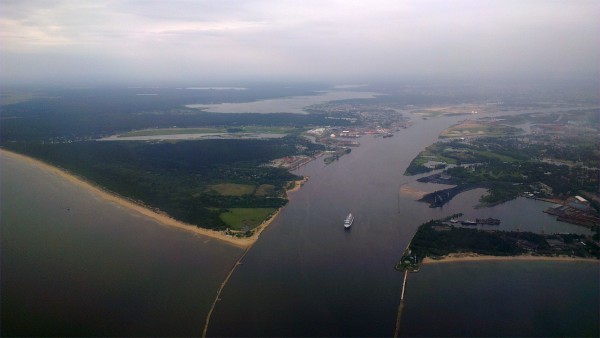 На фотке где Рига, слева от русла Даугавы черная точка. Это затонувший железобетонный корабль "Леди Котлин".
