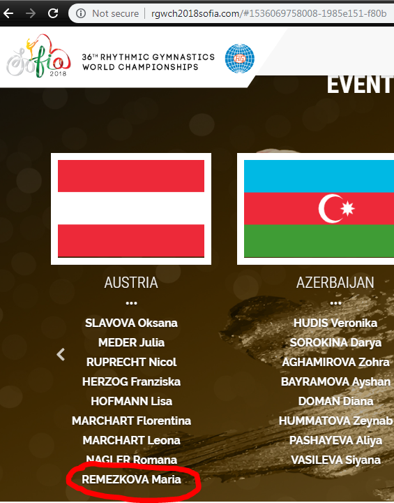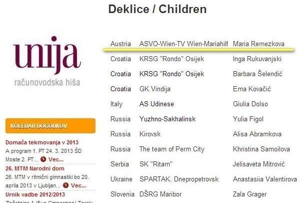 Маша Ремезкова. Большие успехи в гимнастике. Тренируется в Австрии. Ну и выступает за нее, соответственно, в 2013 году, правда, но может вернулась.