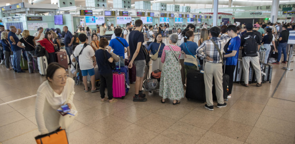 Очередь на сдачу багажа в аэропорту Барселоны позавчера утром ( )