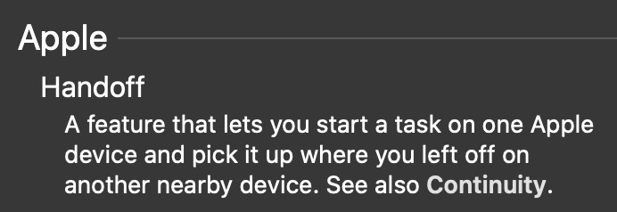 "Handoff" (с прописной буквы)!