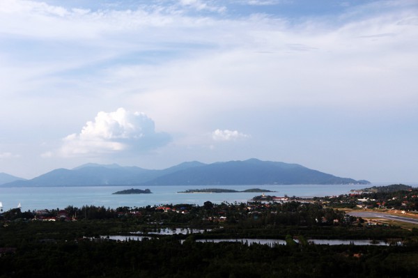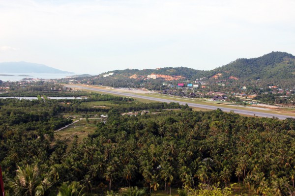 Забрались на холм, откуда хорошо виден остров и единственная посадочная полоса местного аэропорта. Вот такой там вид.