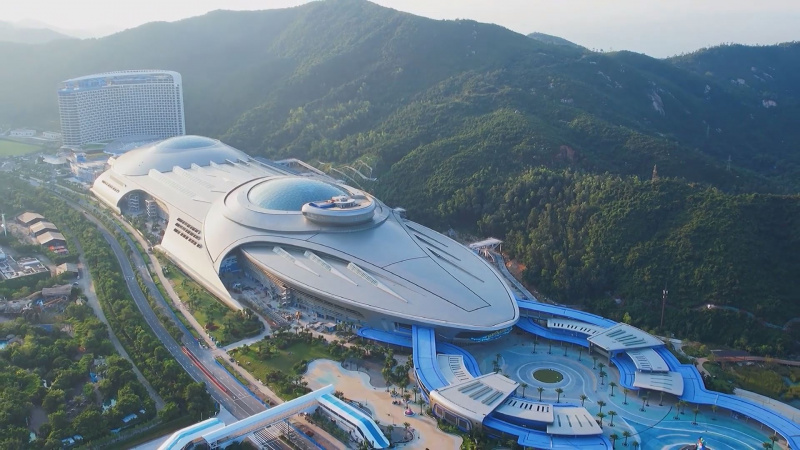 Первую часть Chimelong Ocean Kingdom открыли еще в 2014 году. На 2018 год там уже было 10 млн. посетителей в год. В это всё дело вложили 20 млрд. юаней или 2.75 млрд. долларов по текущему курсу.