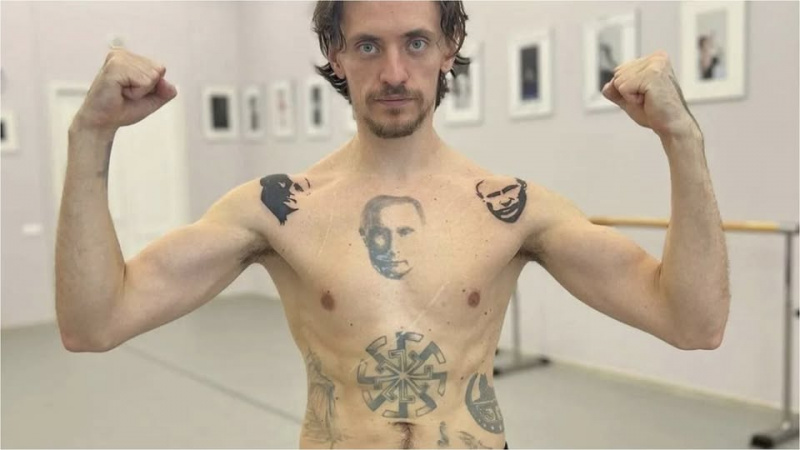 Помните такого балеруна Полунина? Уроженец Херсона, учился в Киевском хореографическом училище. В 2018 году воспылал такой страстью к Путину, что получил российское гражданство, набил у себя на сиськах харю Путина, на пузе набил нацистский коловрат и еще всякой хрени, после чего его сделали руководителем Севастопольского театра оперы и балета. Он стал доверенным лицом Путина, после чего набил еще две его хари на плечах, потом со страшной силой приветствовал войну с Украиной, проводил сборы пожертвований для путинских орков и все такое прочее.