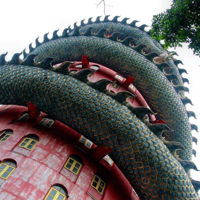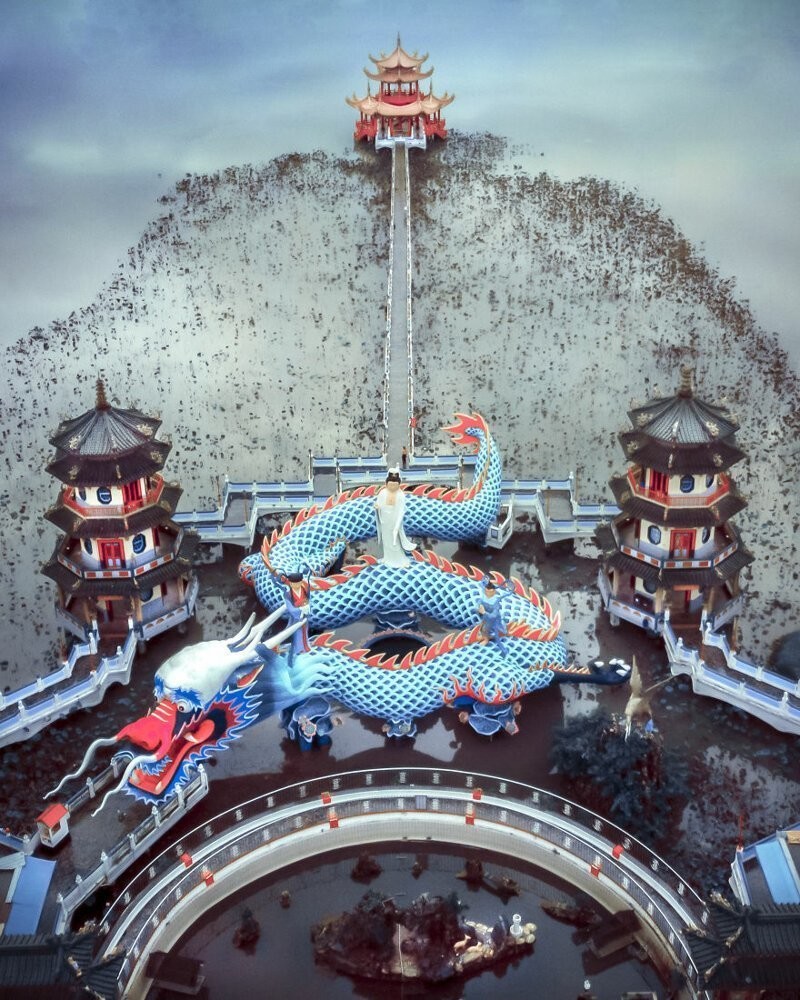 Ощущение от первой фотографии (17-этажный храм Дракона): а по этому слайдеру можно скатиться с крыши? 😄