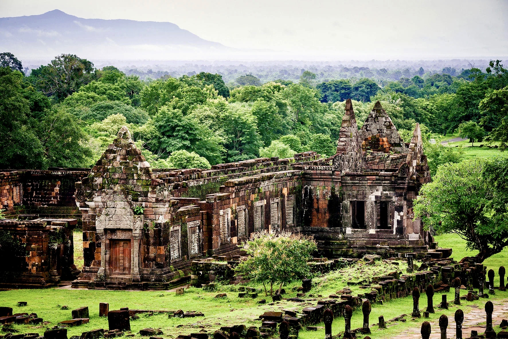 Остатки каменных зданий из больших камней, которые держатся без раствора, только подгонкой. На берегу Меконга (очень красивая река), частично на горе. Рядом, в паре километров, как и тысячу лет назад, нищий город.