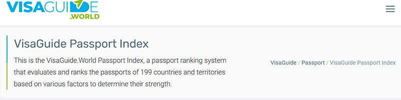Вообще-то общепризнанным рейтингом паспортов является Henley Passport Index, а не какой-то странный косовский VisaGuide с ими самими придуманной методологией подсчёта...