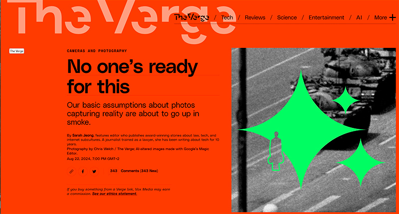 В издании The Verge очень смешная истеричная статья некоей Сары Чон, которая протестировала возможности Magic Editor нового Pixel 9 и теперь предрекает конец света.