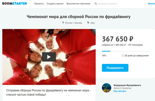Некоторое время назад в том числе и мы с вами помогли сборной России по фридайвингу принять участие в Чемпионате мира 2014 года, проходившем на Сардинии. Тогда обе сборные - и мужская, и женская - стали чемпионами мира, причем мужская сборная добилась этого после одной совершенно несправедливой дисквалификации.