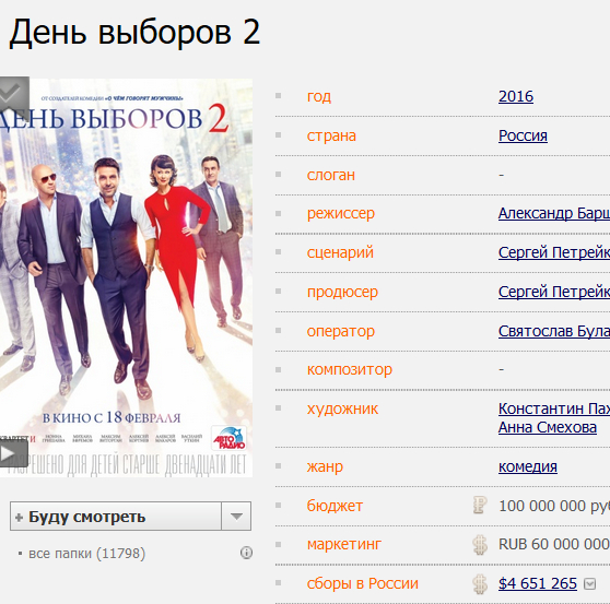 Берем другой недавний фильм - например, "День выборов 2". По "Кинопоиску" - $4,6 млн.