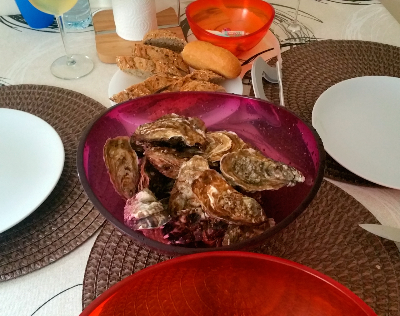 Кто отдыхает (или проживает) в районе Калейя - Льорет-де-Мар, имейте в виду, что в этих краях есть одно местечко, где можно купить свежайших устриц. (Иначе за ними приходится переться под Перпиньян, а это полтора часа езды в один конец.) Это французский рыбный магазин, который находится вот здесь в городе Мальграт-де-Мар. Там продаются нормандские и перпиньянские устрицы. Выбор, конечно, намного меньше, чем на устричной ферме - устрицы только одного размера, причем совсем небольшие, - но вполне свежие и недорогие: я вчера купил 4 дюжины за 44 евро, причем брал пополам: норманские (они дешевле) и перпиньянские. Перпиньянские заметно вкуснее, так что на нормандские лучше и не размениваться.
