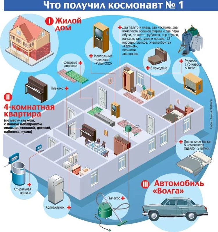 А в советское время за полет в космос космонавтам присваивали звание "Герой Советского Союза" и давали автомобиль "Волга".