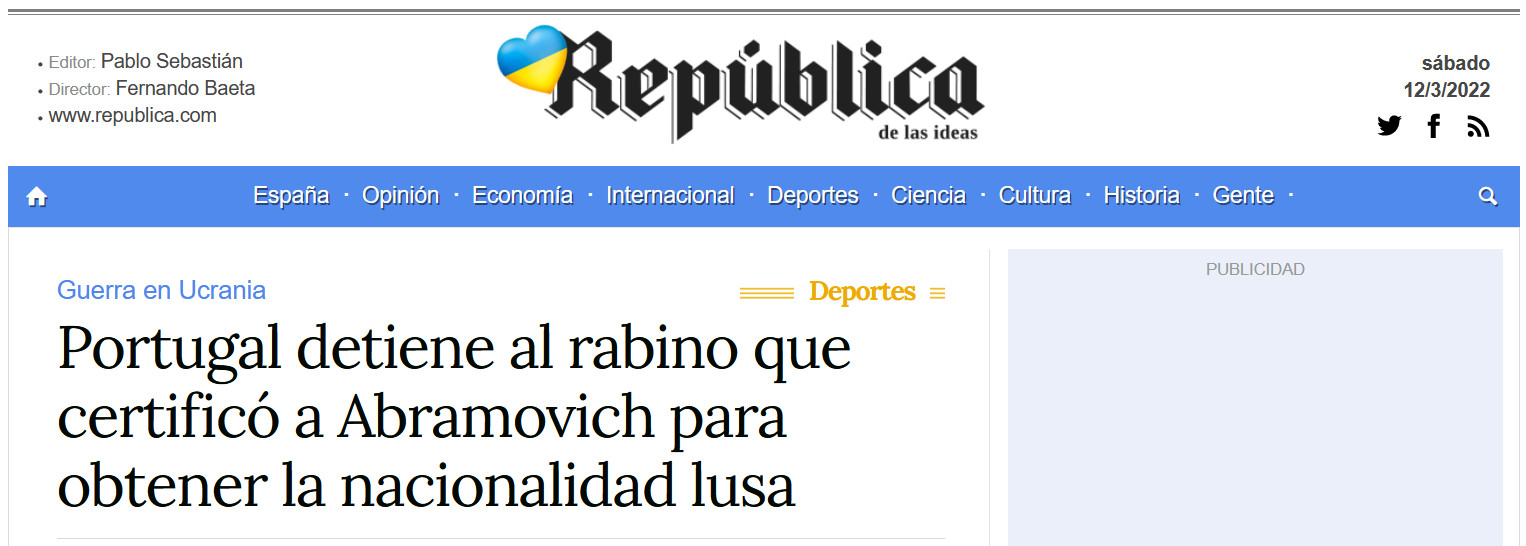 Ну то есть Навальный был прав: Абрамович тупо купил документ за деньги. Так что сефард - ненастоящий. Теперь раввин и причастные - присядут на несколько лет, а гражданство у Абрамовича как пить дать отберут. Ну и ему также запросто уголовка в Португалии может грозить.