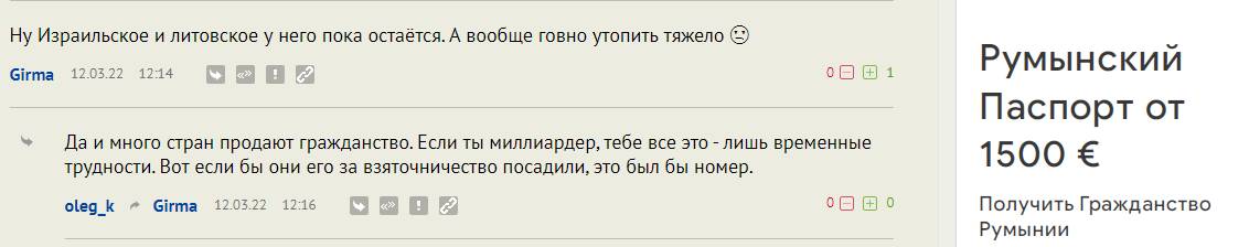 Верно, не туда Абрамович обратился - лучшие паспорта в рекламе у Алекса! 😄