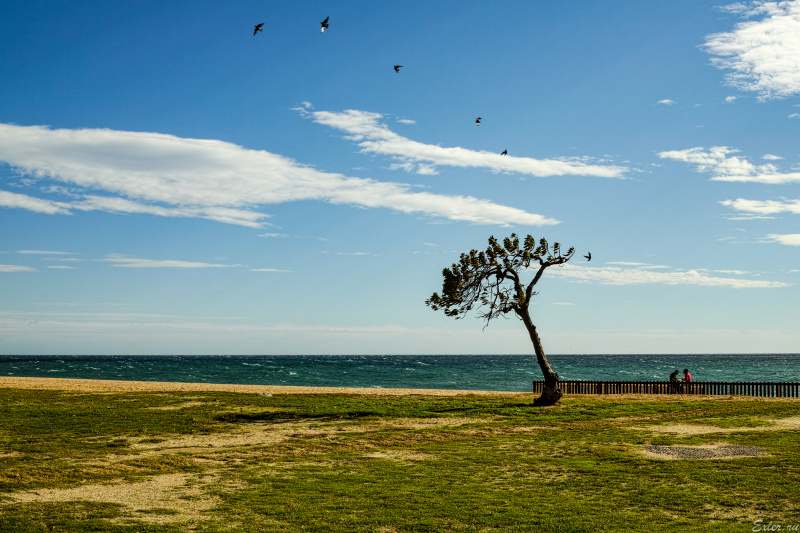 Первая фотография удивительно хороша! Птички, дерево, парочка справа и море в барашках - очень выразительная композиция получилась.