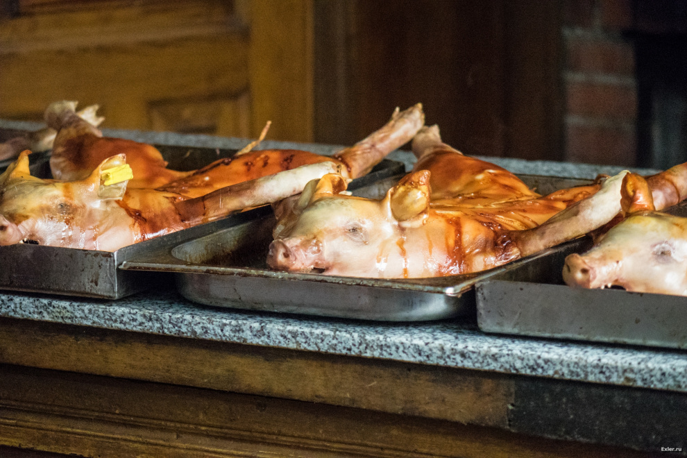 В глубине зала была старинная печка из которой повар периодически доставал вожделенных молочных поросят.