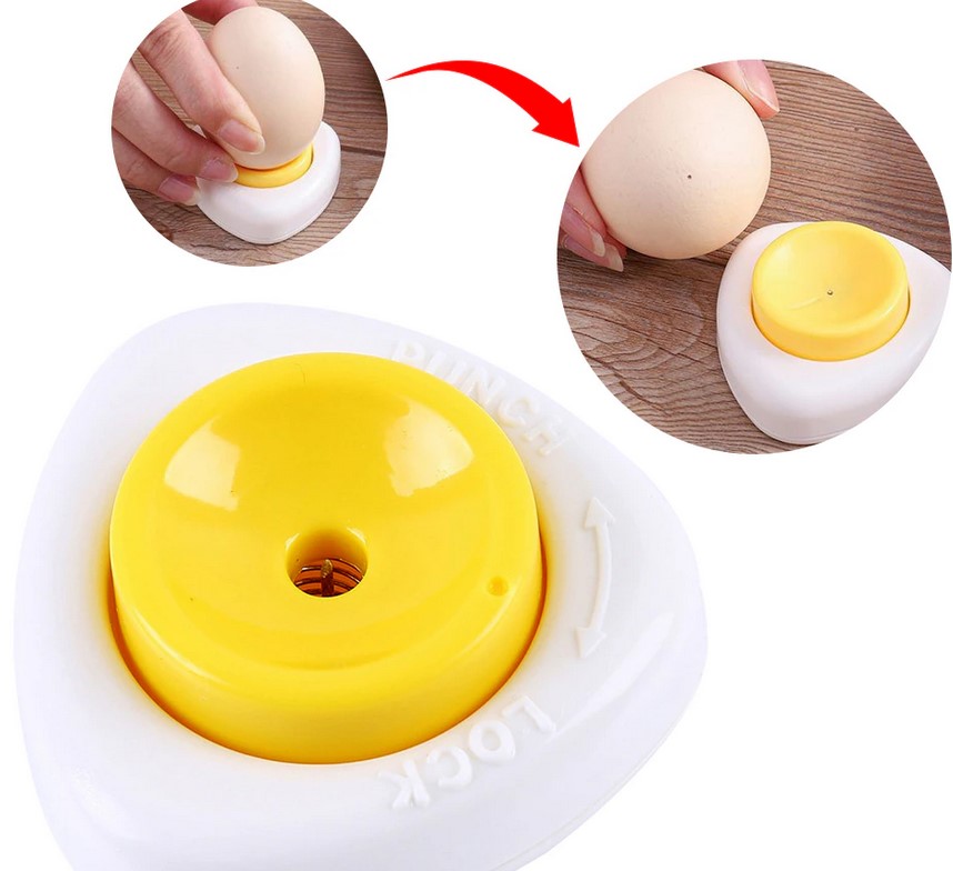 2) прокалываем пином яйцо (pin держим на магните на холодильнике)