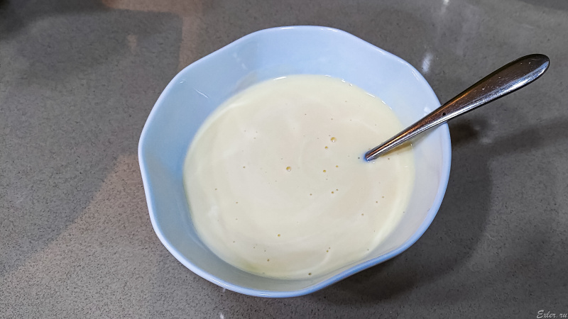 Теперь готовим заливку для запекания. Берем 2 яйца, взбиваем в плошке вилкой или венчиком. Вливаем туда сто граммов молока или сливок (сливки, конечно, дадут более насыщенный вкус, но и большую калорийность). Выдавливаем туда две дольки чеснока. Солим, перчим, добавляем приправы по вкусу: прованские травы, орегано и так далее.