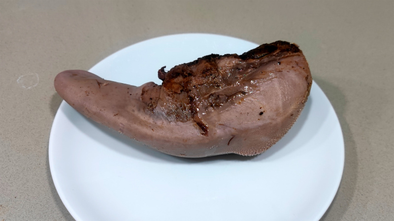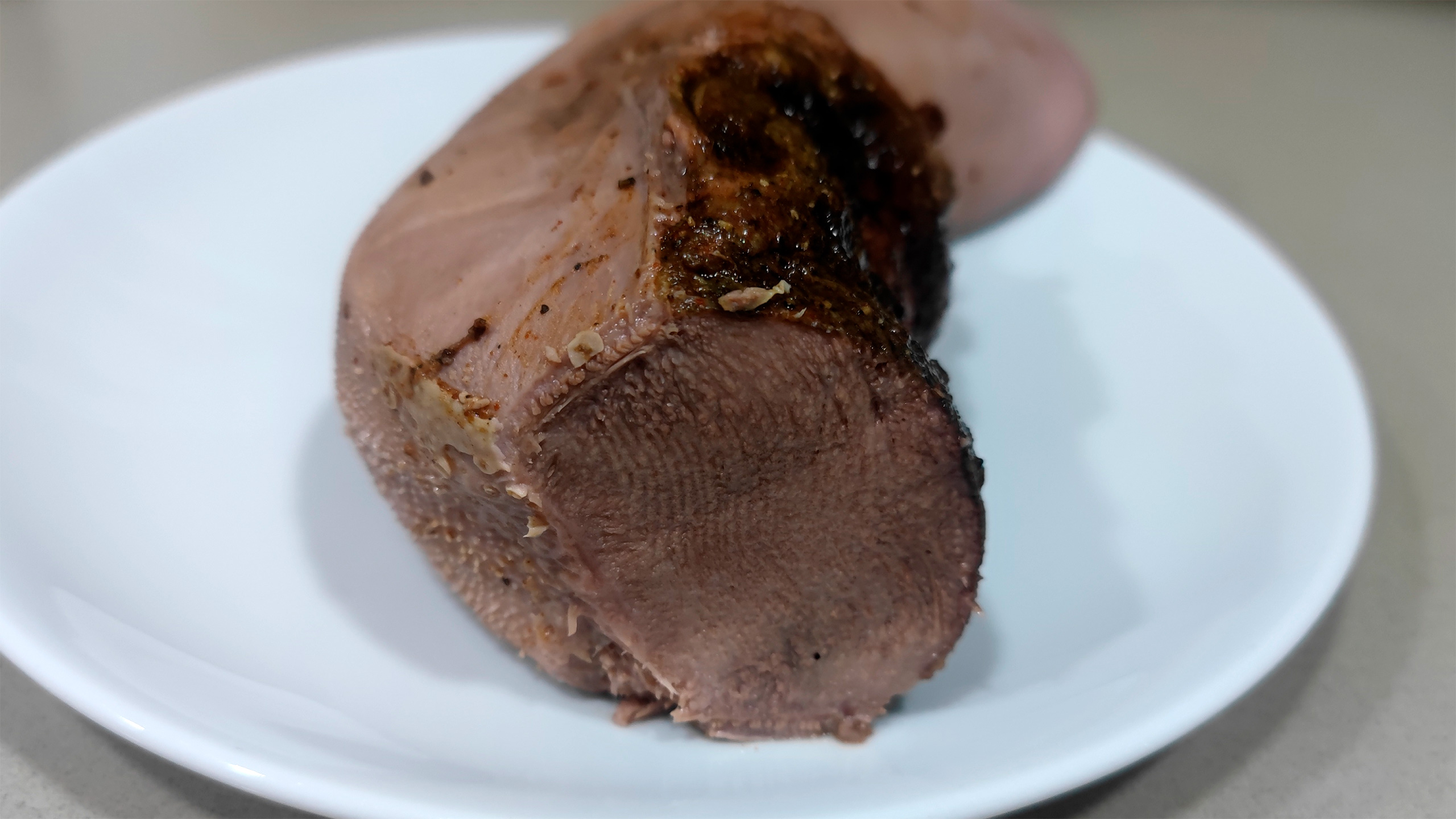 Разрезаем, пробуем - отлично, то что нужно! Очень нежный язык, при этом правильная консистенция мяса. Ну и мы пробовали еще держать в сувиде 8 часов - так он получается чуть пожестче, что мы также любим.
