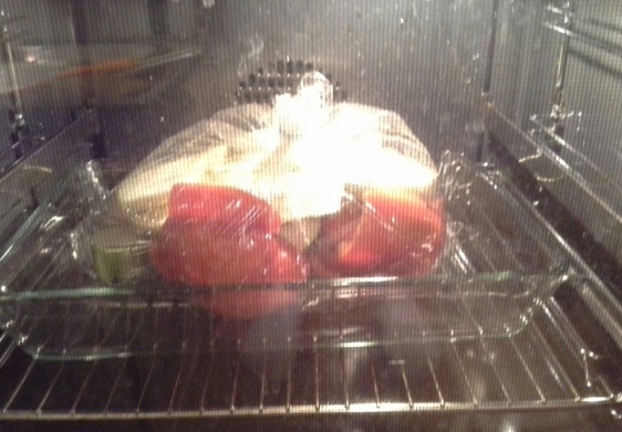Духовку разогреть до 200 градусов и поместить рукав на противне в духовку на 1,5 часа.