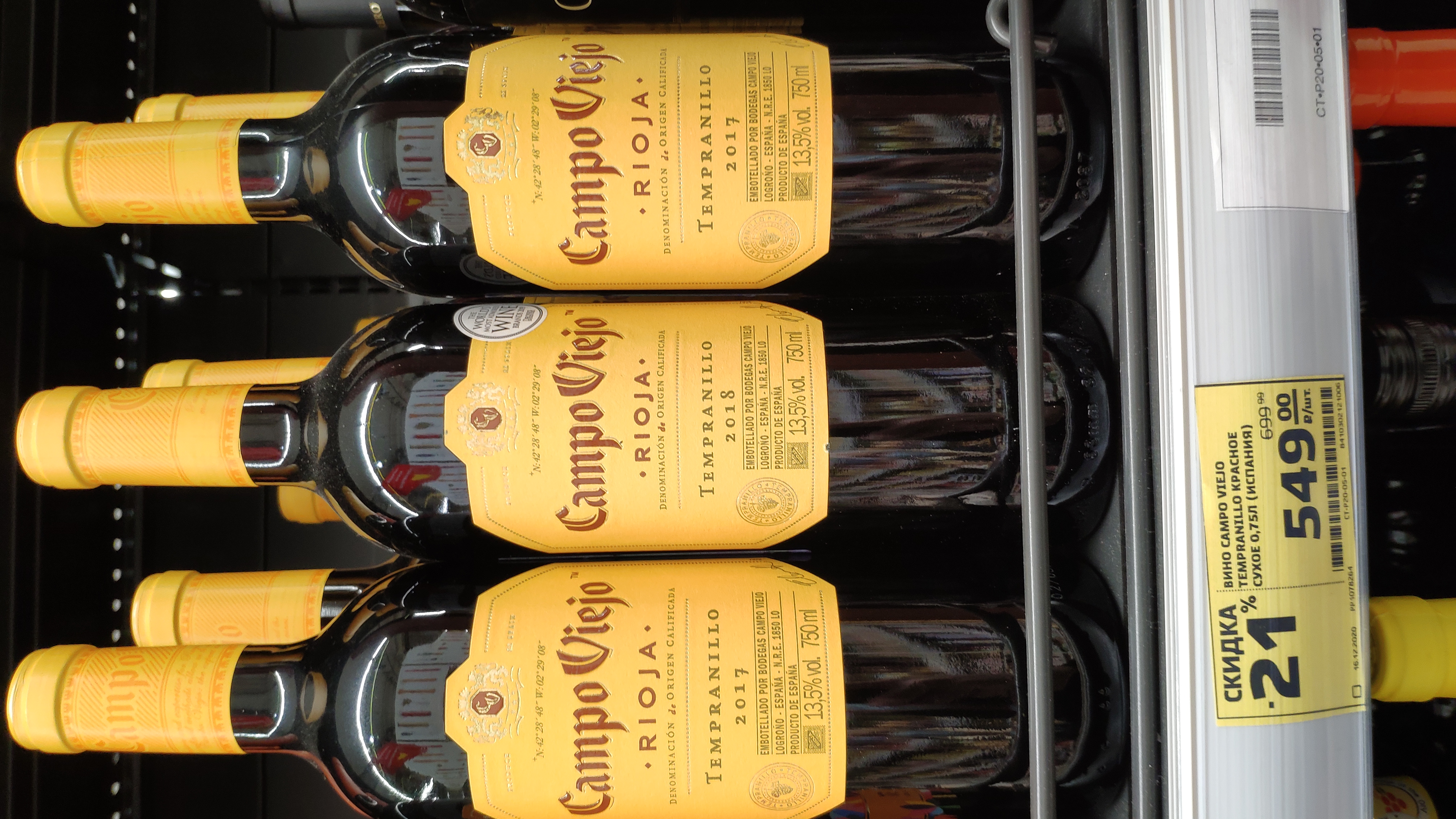 И вот теперь можно что-нибудь выпить. У нас как раз завалялась бутылочка красной риохи - "Сampo Viejo Rioja Tempranillo 2018".