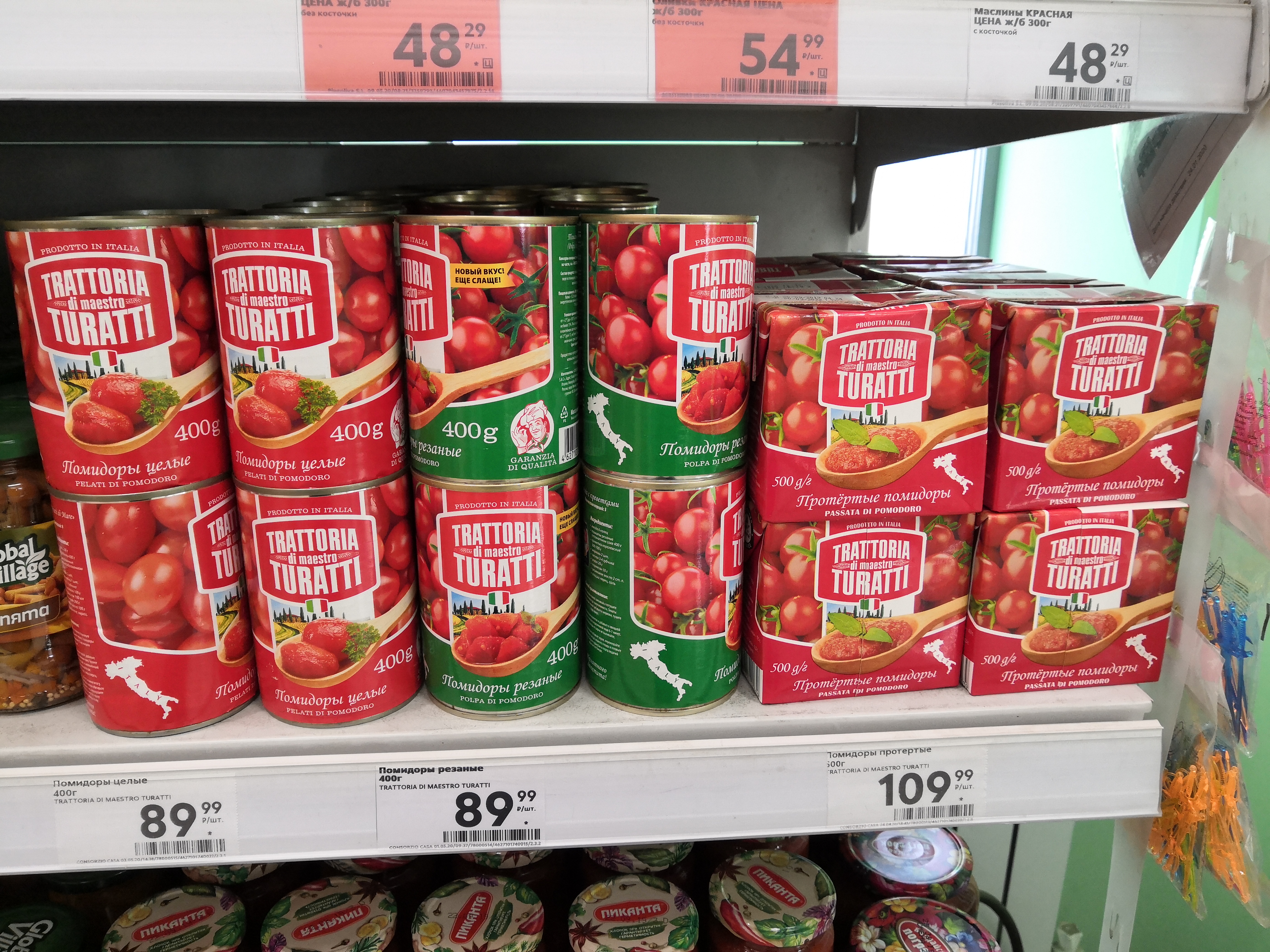 Вот такие помидоры в простой Пятерочке! И резаные, и протёртые, и в собственном соку!