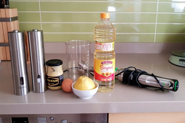 Итак, домашний майонез. Соус чрезвычайно простой в приготовлении. Так как он хранится в холодильнике не более пары дней (из-за входящих в состав сырых яиц), я его обычно готовлю маленькими порциями.