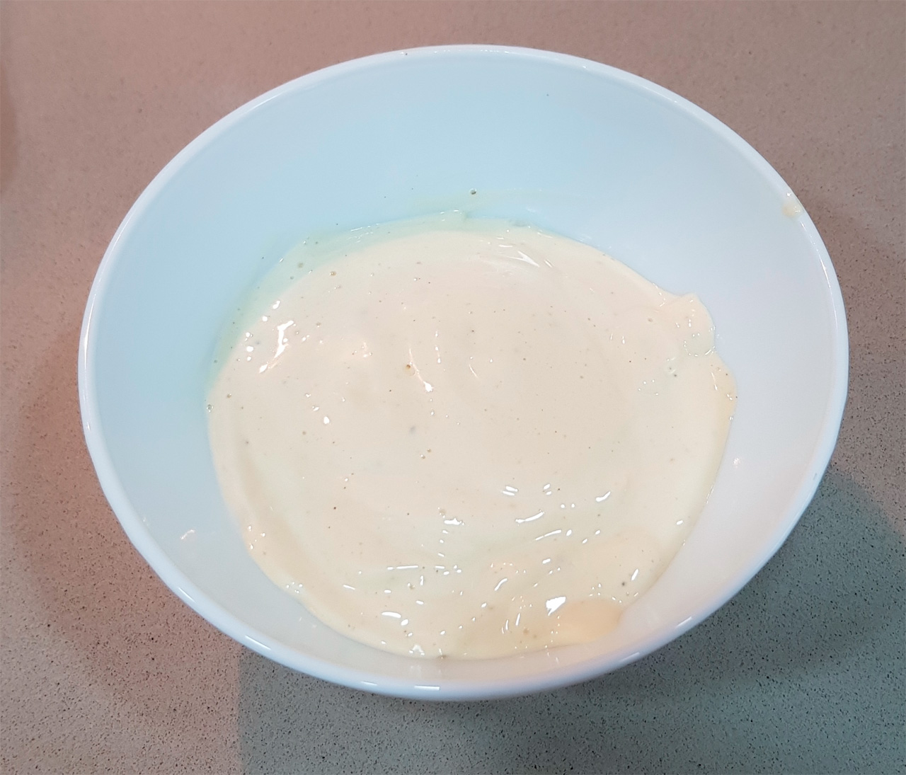 Густой пресный йогурт, чуть горчицы туда, немного соли и лисонный сок
