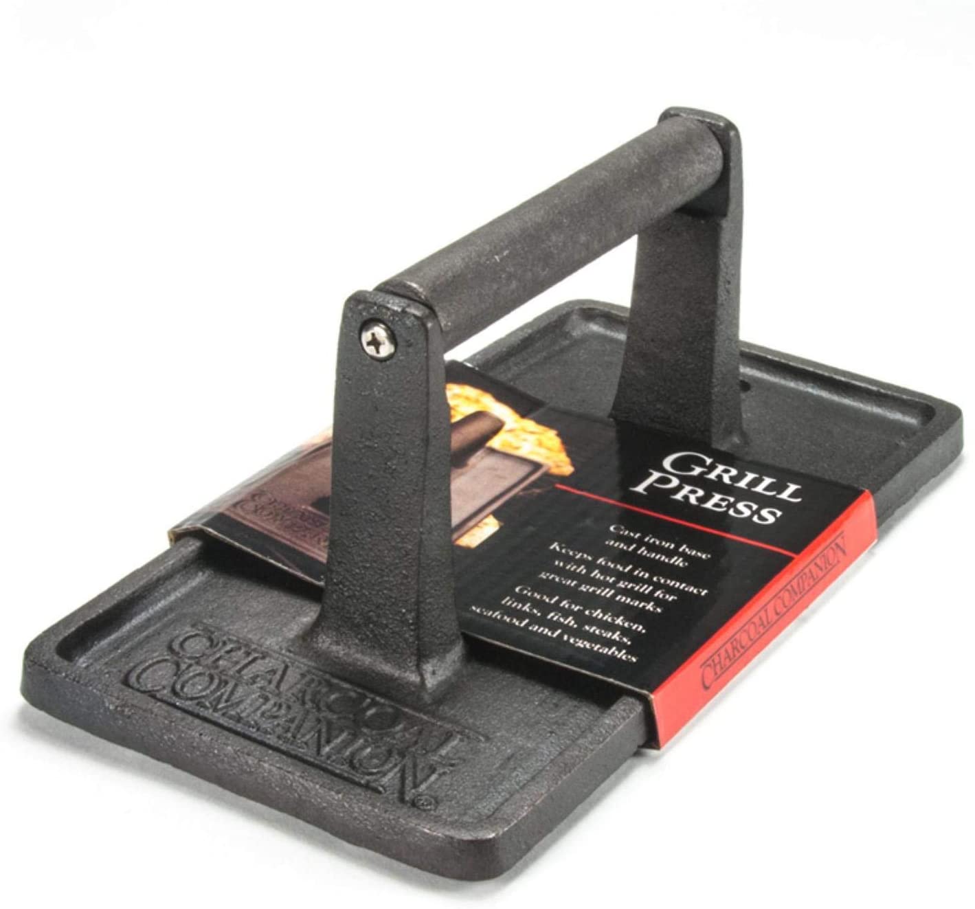 Всего делов - взять круглое плоское oven/microwave-safe блюдо чуть меньше диаметра сковородки, поставить его (дном вниз) на цыплёнка и прижать сверху блином 2.5-5 кг от разборной гантели.
