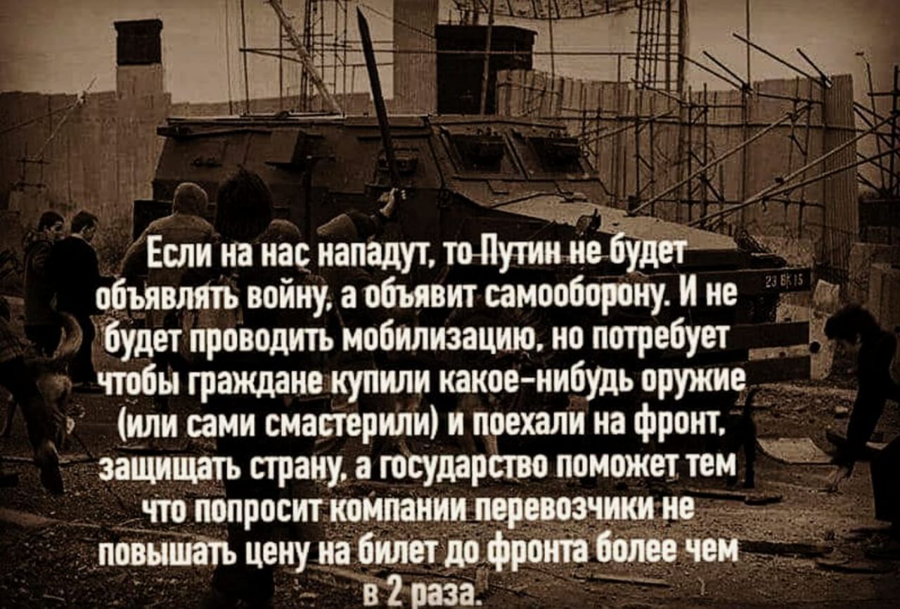 Окей, нет у вас денег, потратить деньги в этих условиях на покупку долларов – отлично. Идите по китайскому пути, по сценарию города Ухань, где будете формировать продовольственные заказы и развозить по каждой квартире, у входа в каждую квартиру. У вас 340 000 человек работает в нацгвардии, им все равно сейчас нечем заняться, никаких протестных митингов нет, никого гонять не надо, сидят, задарма хлеб жуют. Вот пусть берут пакетики и развозят с продовольствием. Правительство будет закупать, формировать продовольственные пакеты. Слава богу, госрезерв большой, там всего этого добра – тушенка… Делайте пакетики, развозите и ставьте у каждой двери. Пожалуйста. Защищайте граждан. Хоть что-нибудь делайте, чтобы защищать граждан.