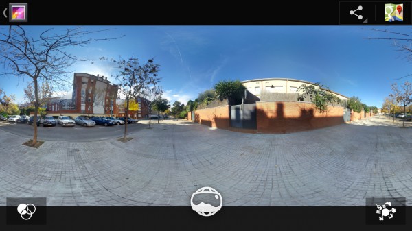 Надо сказать, что пока приложение работает кривовато. За 2-3 дня тестирования мне реально удалось сделать буквально пару полноценных панорам. Потому что в 80% случаев при создании конечной панорамы приложение "Галерея" завершалось с ошибкой, после чего у меня двумерная панорама оставалась, а трехмерная сферическая не создавалась. Также при съемке помещений иногда в созданной сферической панораме выпадал верхний ряд.