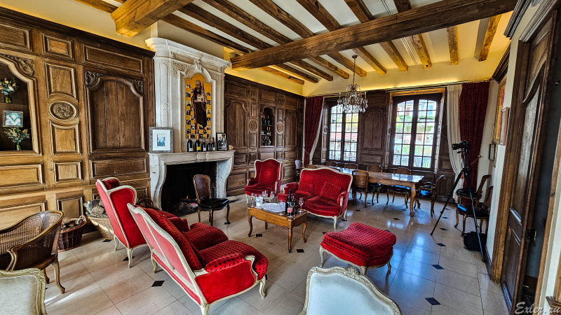 Каминный зал для дегустаций: здесь бывали многие именитые люди, фото которых висят над камином.