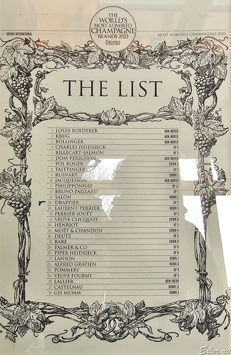 Уже на выходе сфотографировал таблицу лучших шампанских вин 2023 года, которая у них была выставлена в холле.