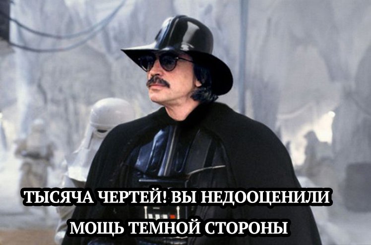 надо еще сфотожабить с бело-лысой головой. Ну, как в Эмпайр Страйкс Бэк, когда с него снимают шлем, и он копыта отбрасывает, в последний момент признав, что был не прав.