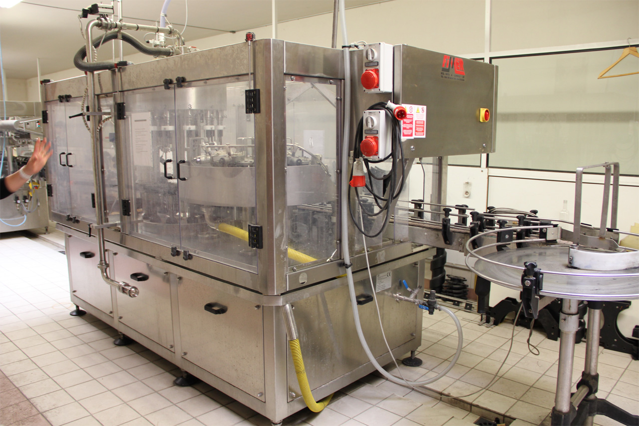 Линия по розливу вина в бутылки. Полный автомат: разливается, закупоривается, наклеиваются этикетки.