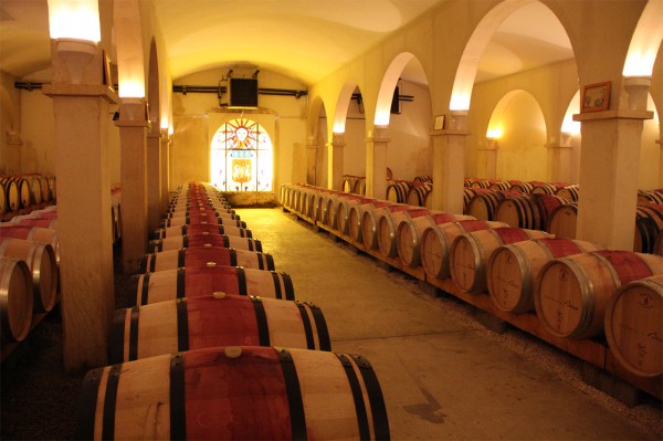 В этих бочках из французского дуба выдерживают красное вино. Нас заинтересовала дизайнерская красная полоска посередине бочки. Объяснили, что раз в неделю приходит человек, который доливает вино, чтобы не оставалось никакого кислорода. Так что красная полоса - от переливающегося вина. Лучше чтобы перелилось, объяснили нам, но никакого кислорода.