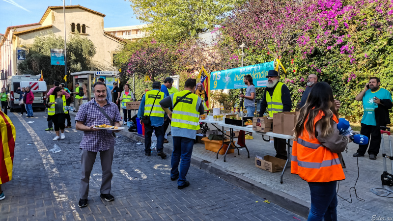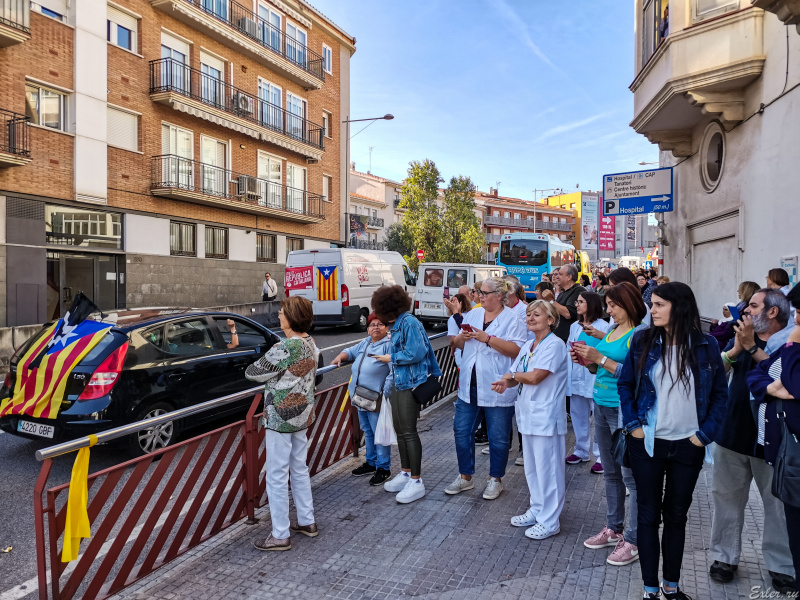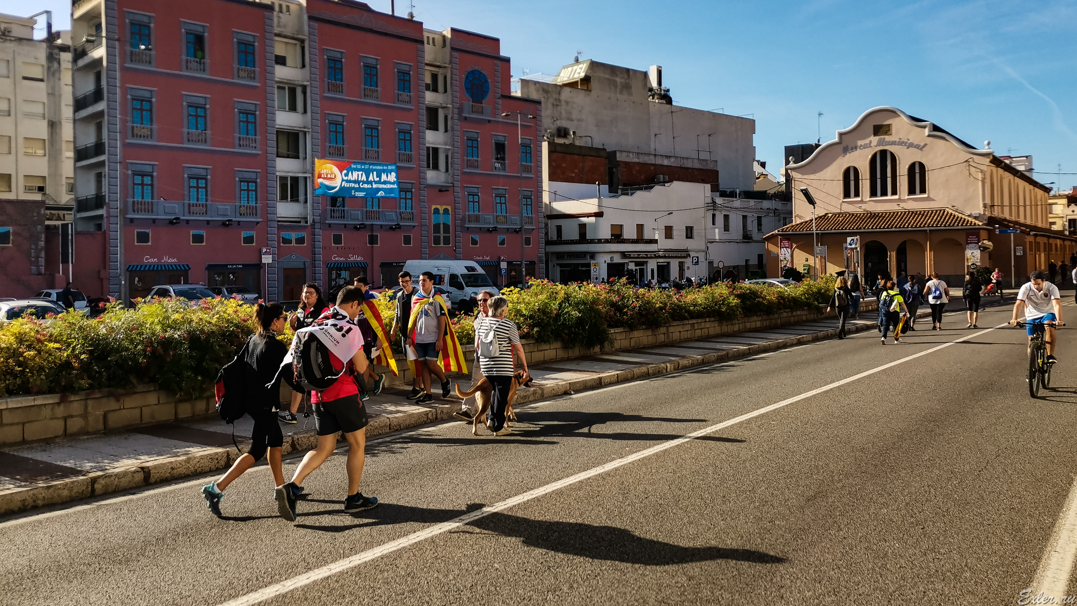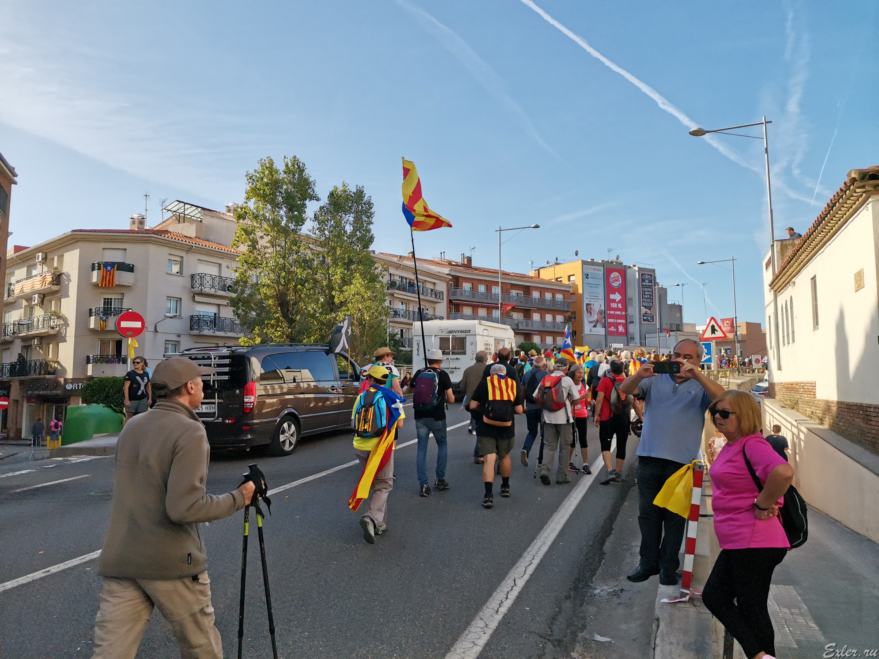 В наших краях сегодня было шествие. Началось от городка Мальграт-де-Мар и отправилось в сторону Барселоны. Я, к сожалению, начало шествия не застал, но пробежался вдоль него и составил себе впечатление о том, что оно собой представляло.