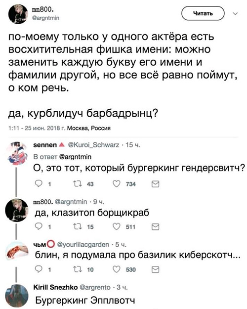 Не понимаю хайпа вокруг фамилии и имени этого актера. Фамилия, как фамилия.