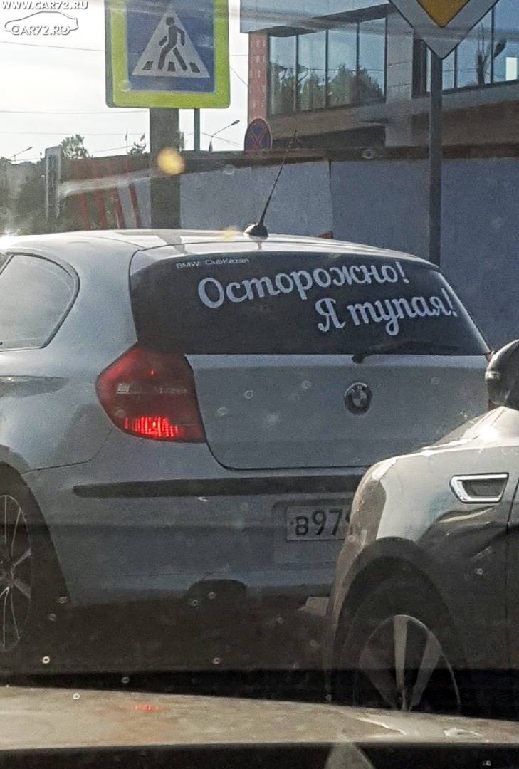 Нужные, кстати, надписи. "Дебил за рулем. Осторожно!" вряд ли кто самокритично напишет. А так и владельцу приятно, и окружающим полезно.