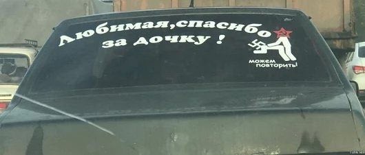 А, кстати, те странные люди, которые на заднем стекле машины пишут "Спасибо за сына" или "Спасибо за дочь" - они благодарят других автомобилистов, что ли? И как классно это сочетается с другим идиотизмом под названием "Можем повторить".