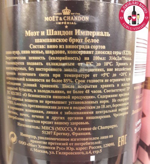 Как видно на фото, у Моёт нормальная этикетка на русском.