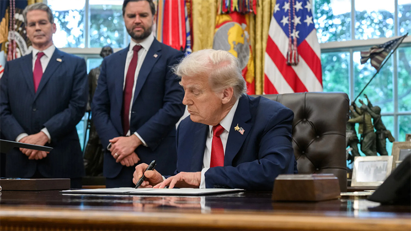 Трамп в момент подписания указа, меняющего суть мироздания