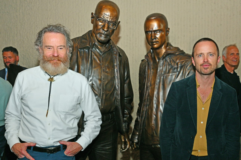 В Альбукерке презентовали бронзовую композицию Уолтера Уайта и Джесси Пинкмана из "Во все тяжкие". На презентацию приехали члены съемочной группы и каст сериала.
